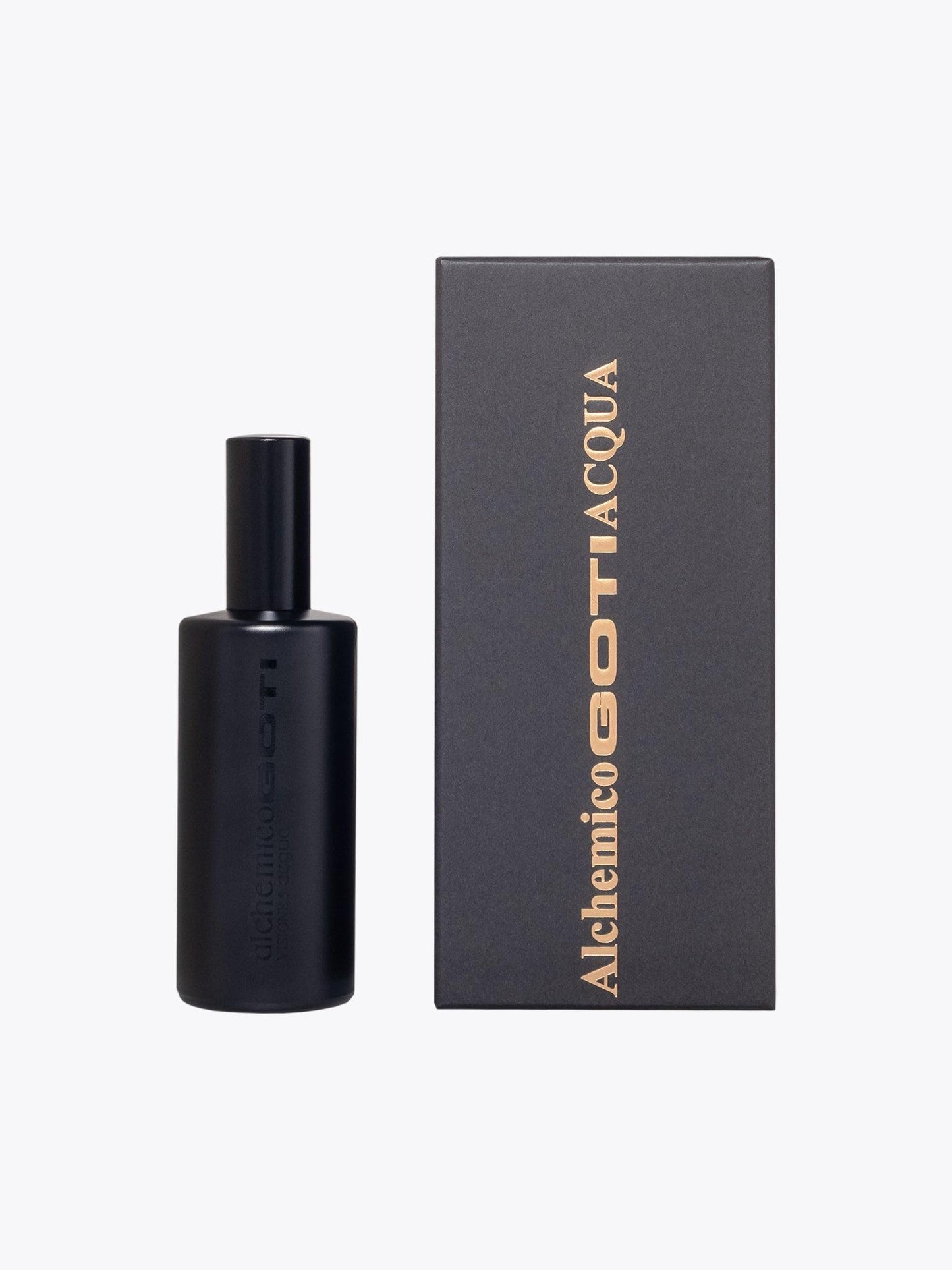 - Packaging: anthracite paper box with the golden writing "AlchemicoGOTIACQUA"